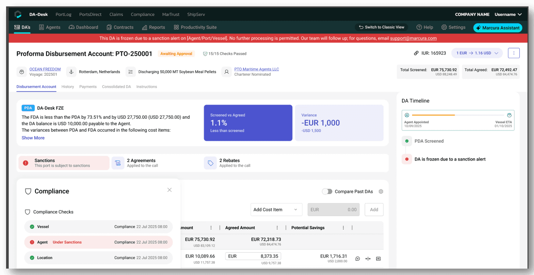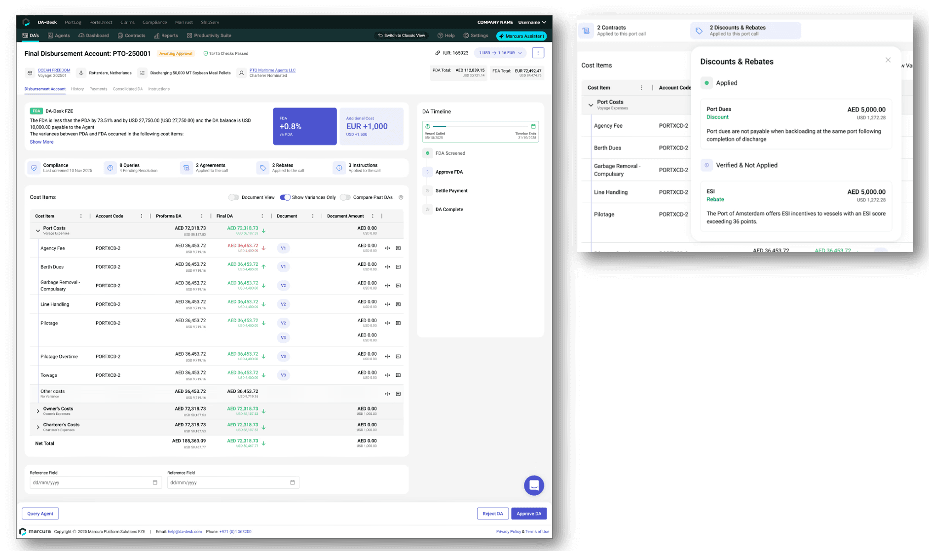 All screening outputs, agreements, rebates, and instructions are surfaced in one consolidated view, removing guesswork around what has already been handled by DA-Desk.